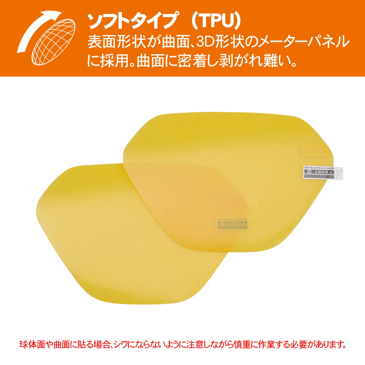 メーターの表面形状に合わせてハードタイプ(PET)?・?ソフトタイプ(TPU)を設定。